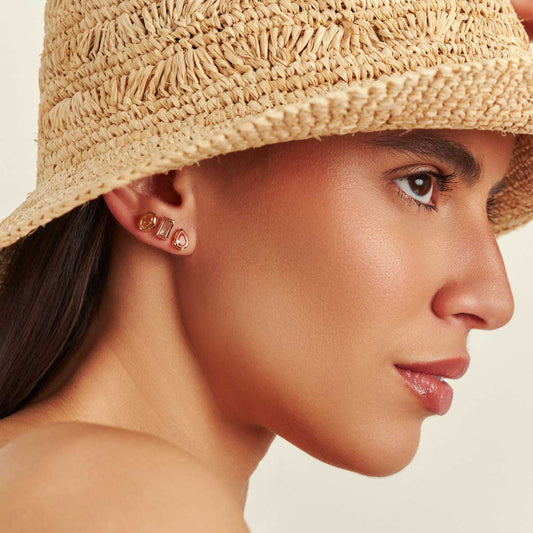 Brinco ródio minimalista orgânico, cravejado, Katrina