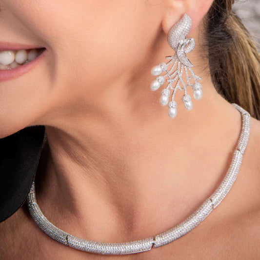Conjunto Legado de Luz - Conjunto Colar e Brincos Ródio Cravejado – Design Orgânico Luxo