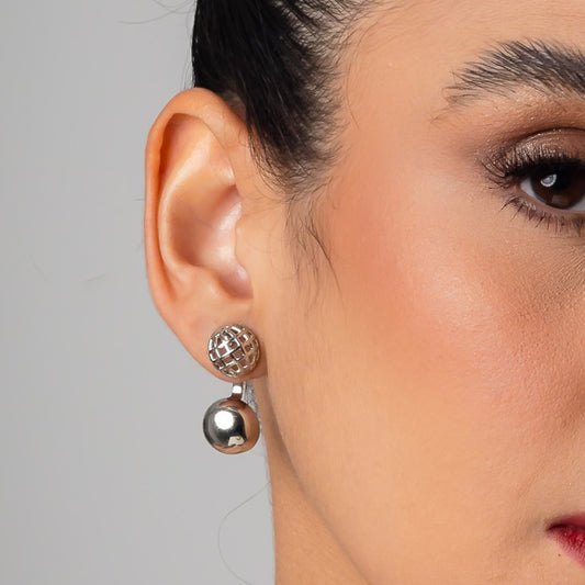 Brinco Duplo Globo Esferas Ródio