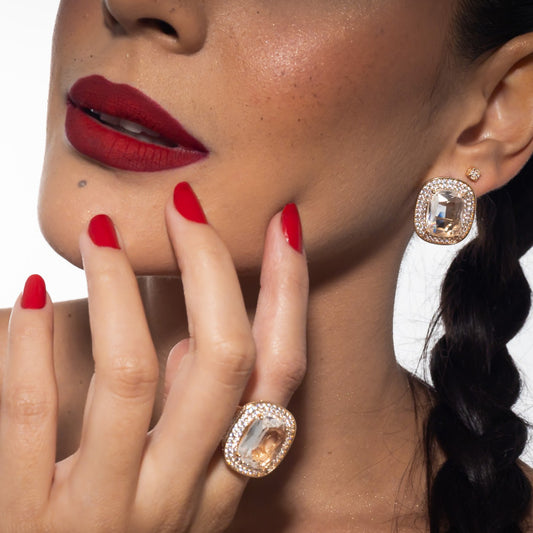 Brinco Rai Dourado Quadrado Cravejado em Zircônias