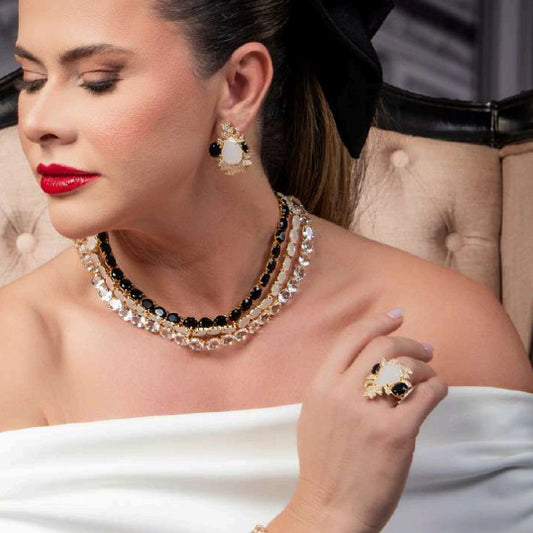 BRINCO PINGO DO CÉU ESTILO GOTA CRAVEJADO COM ONIX E PEDRA LEITOSA