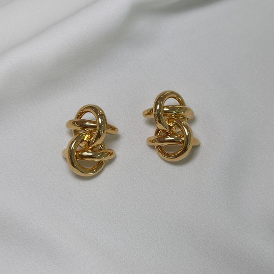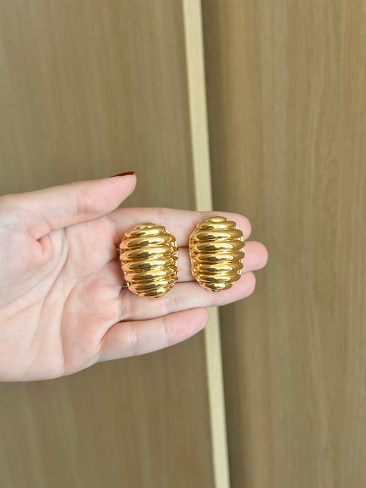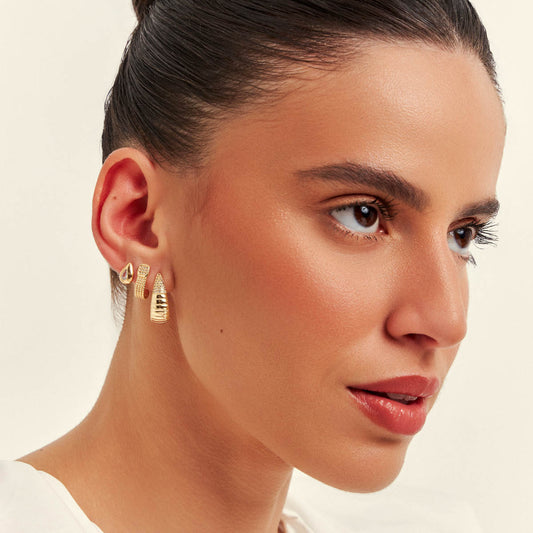 BRINCO MEDIO 2 COLUNA ZIRCONIA 2 VOLTA VAZADO CURVO 21X7X6MM BAN. DOURADO /INCOLOR