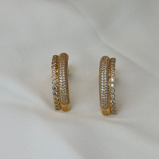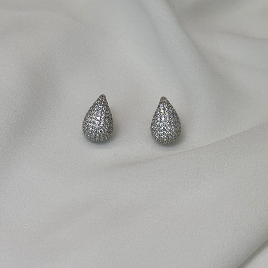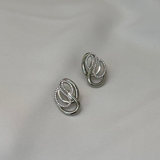 Brinco ródio minimalista orgânico, cravejado, Katrina