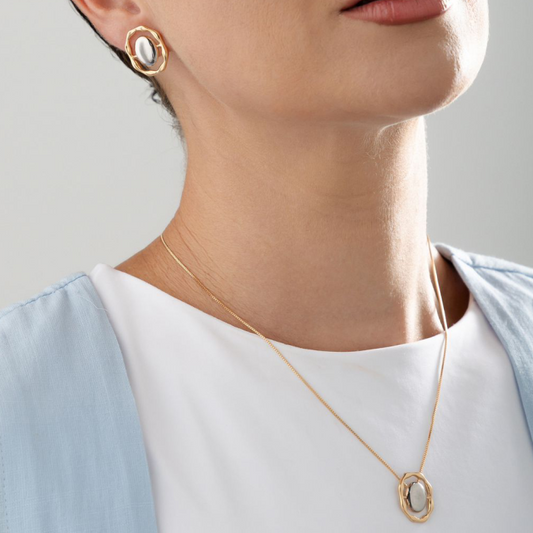Conjunto Brinco e Colar Geométrico com Cristal– Banhado a Ouro 18k