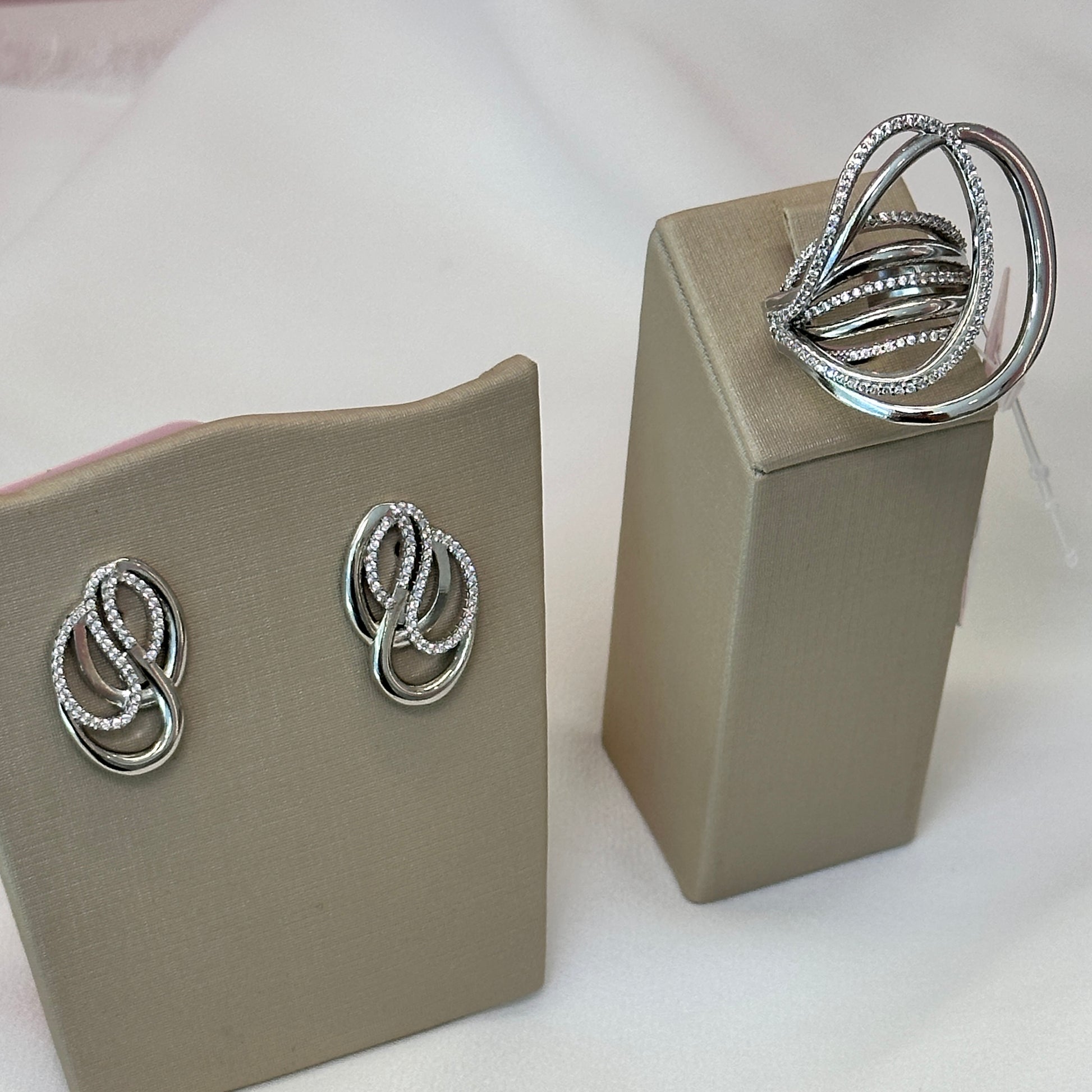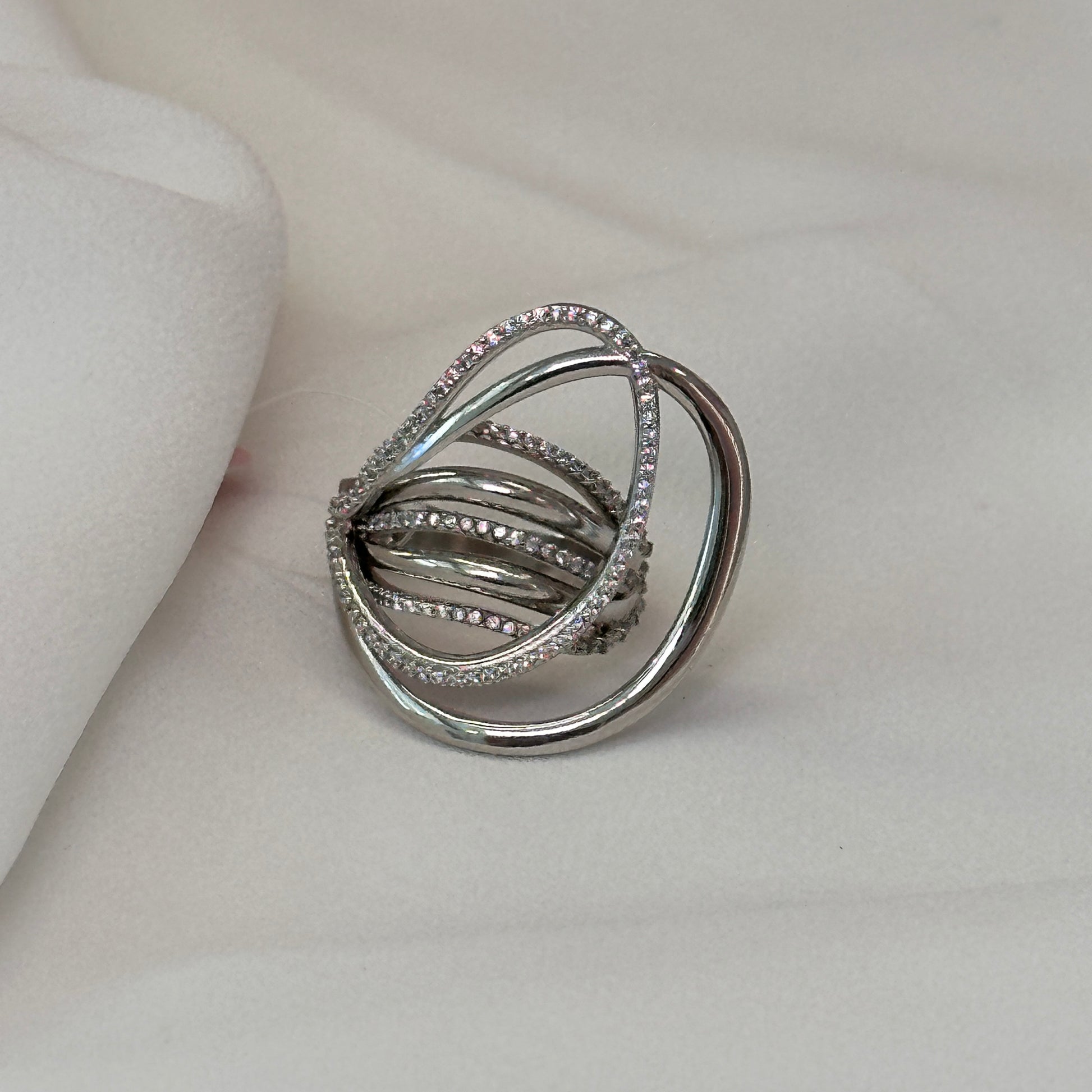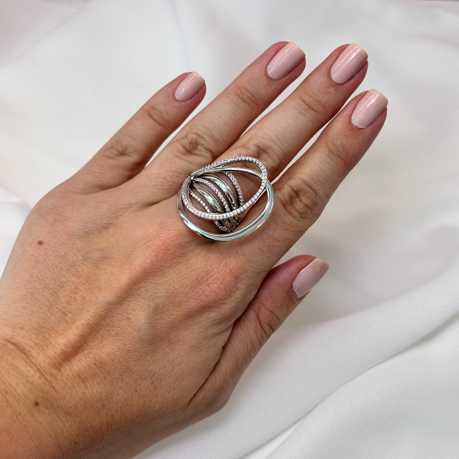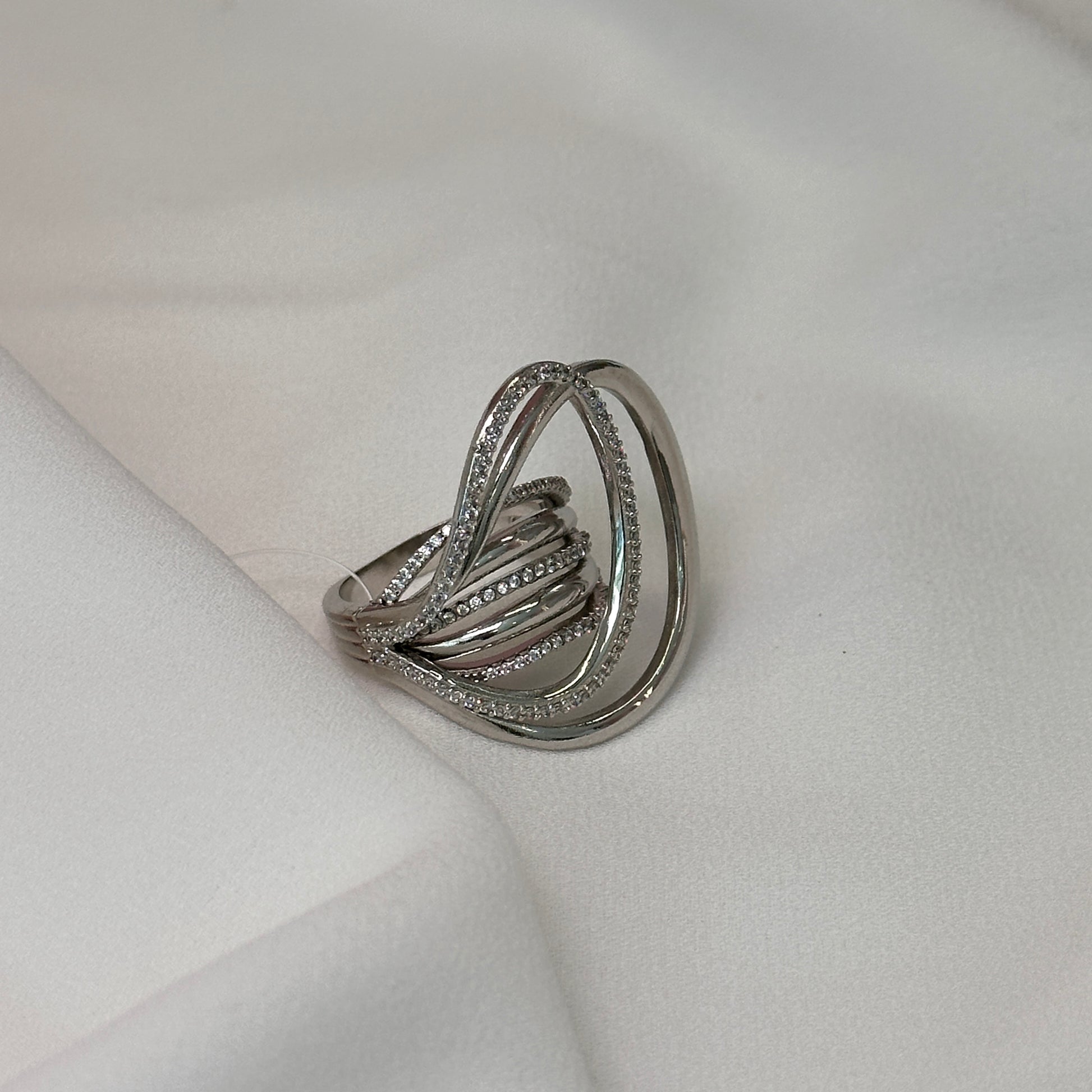 Anel design moderno em rodio com zircônias Katrina