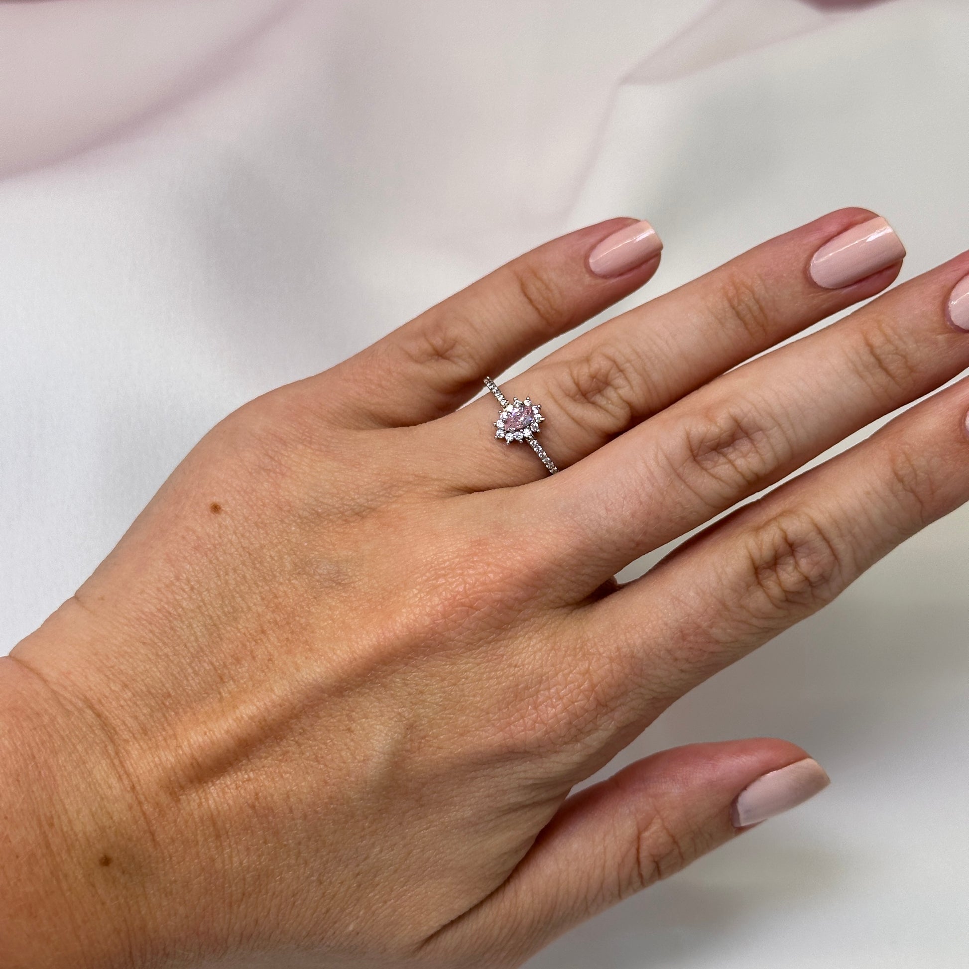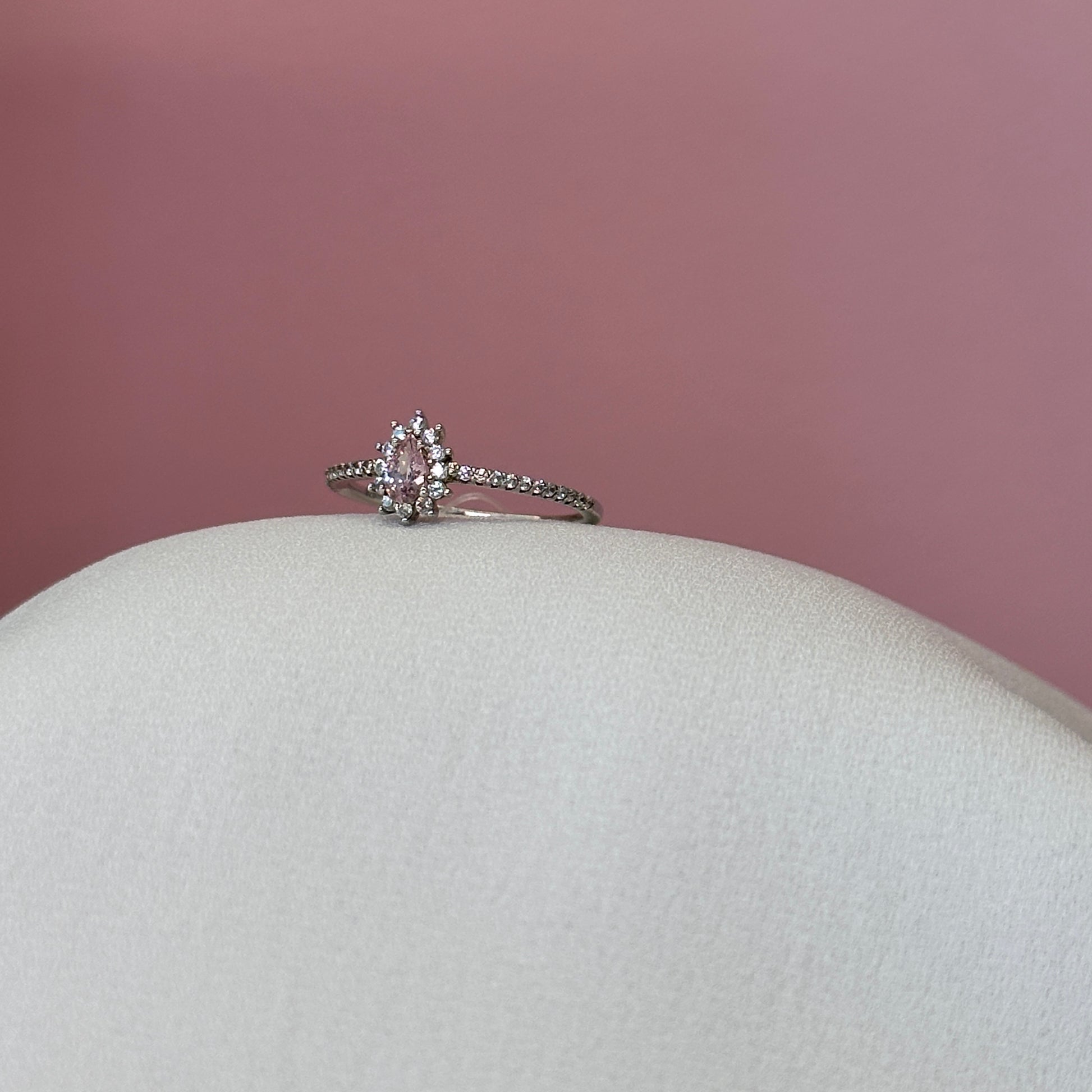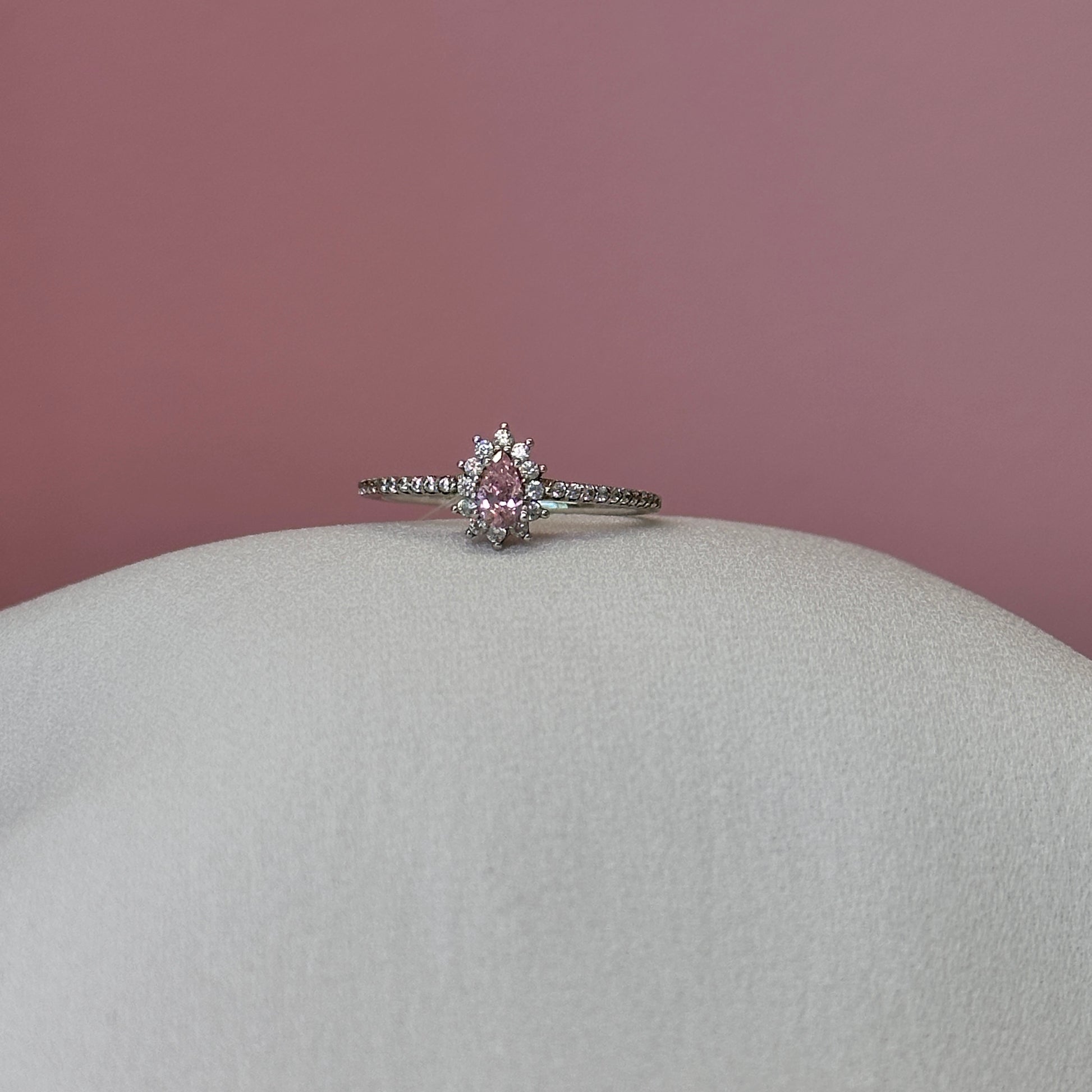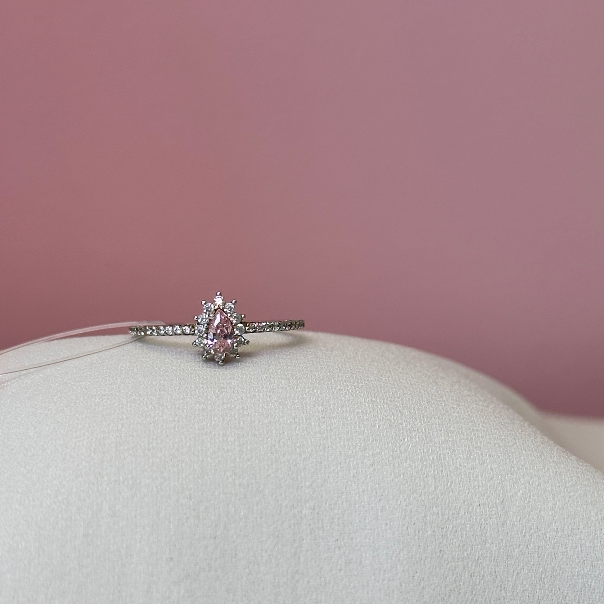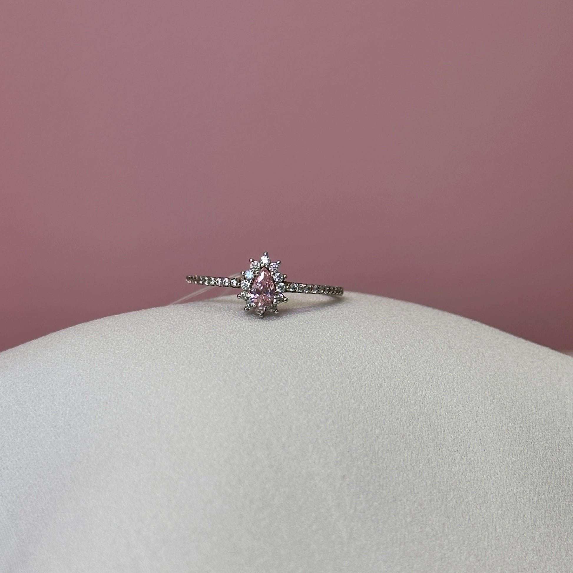 Anel prata 925 solitario cravejado pedra quartzo rosa gota