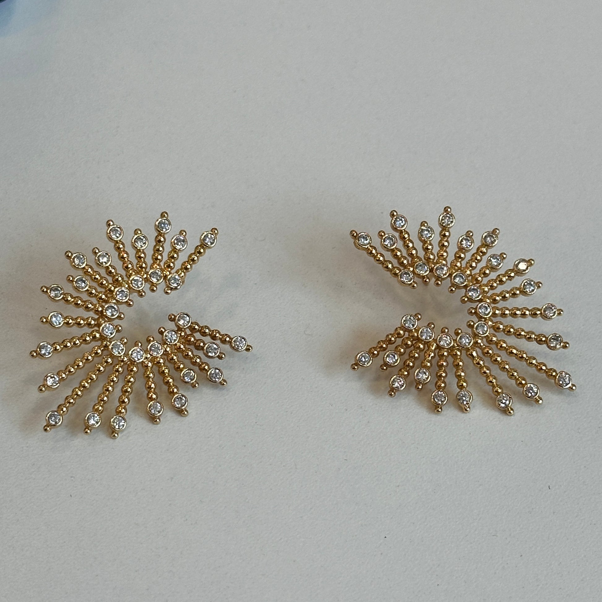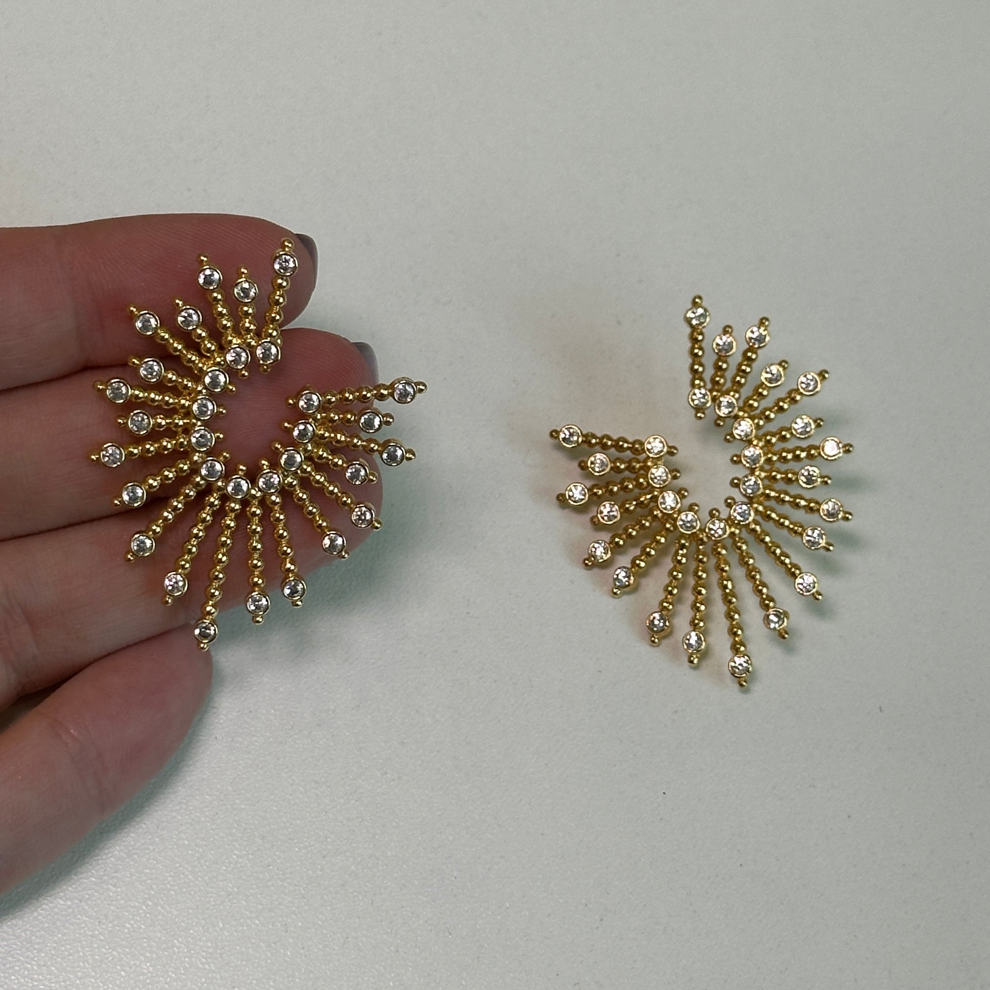 Brinco dourado, argola frontal cravejada, Espelho
