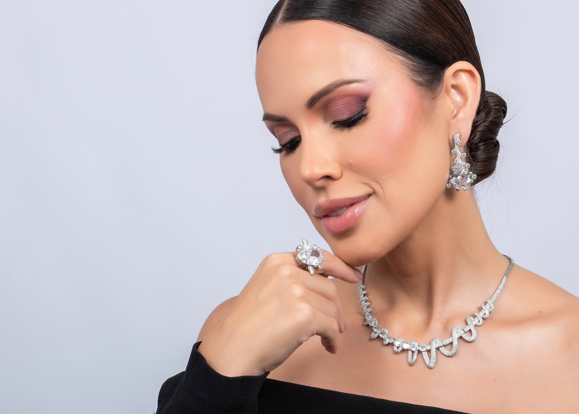 Conjunto Legado de Luz - Conjunto Colar e Brincos Ródio Cravejado – Design Orgânico Luxo