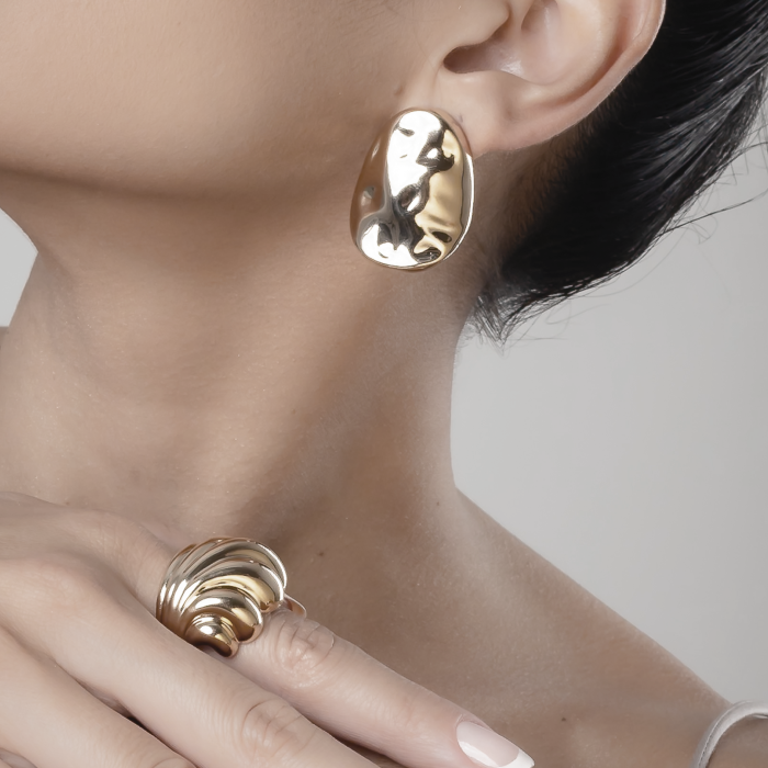O Brinco Rocha BOLD texturizado com banho de Ródio é uma declaração de estilo para a mulher moderna. Este brinco apresenta um design ovalado com uma textura martelada única, que confere um visual arrojado e contemporâneo. Sua superfície irregular reflete a luz de forma dinâmica, criando um efeito visual intrigante e sofisticado. Ideal para quem busca peças que se destacam pela originalidade e pelo design inovador, este brinco é perfeito para adicionar um toque de personalidade a qualquer look. Não perca a chance de ter esta joia que une arte e elegância. Adquira o seu e transforme seu visual com um toque de ousadia!