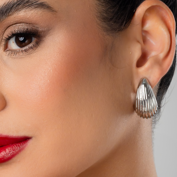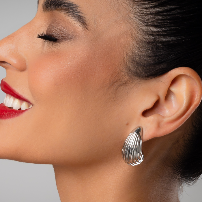 Brinco Gota Concha Abaulada texturizada no Ródio