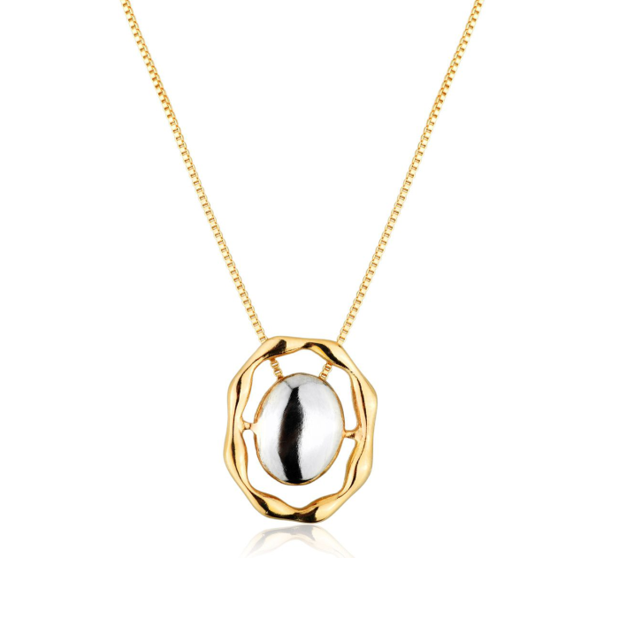 Confeccionado com materiais de alta qualidade, este colar garante durabilidade e um brilho sofisticado. O colar possue correntes delicadas que realça o pingente. Banhado a ródio e também banhado em ouro 18k. Ideal para quem busca acessórios que fogem do convencional e expressam um estilo moderno e autêntico. Perfeito para o dia a dia, eventos casuais ou para presentear alguém com bom gosto e apreço por design exclusivo.