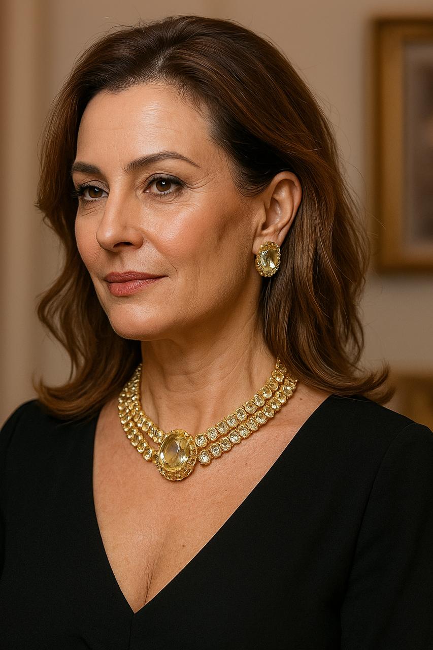 Conjunto citrino Imperial Thamires dourado pedra fusion