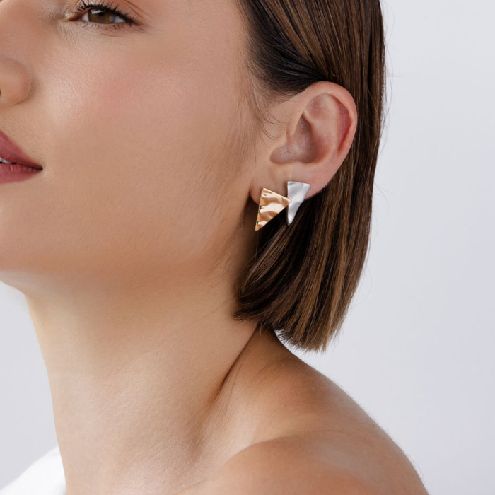O Brinco Triângulo Texturizado Dourado é uma peça que exala modernidade e originalidade. Com um design arrojado em formato de triângulo, este brinco combina o brilho do banho de ouro 18k com um acabamento martelado marcante. Sua superfície texturizada adiciona profundidade e um toque artístico, tornando-o um acessório único e cheio de personalidade. Perfeito para quem busca se destacar com um estilo contemporâneo e ousado, este brinco é ideal para complementar looks criativos e cheios de atitude. Adquira esta joia que une arte e elegância. Compre agora e transforme seu visual com um toque de ousadia!